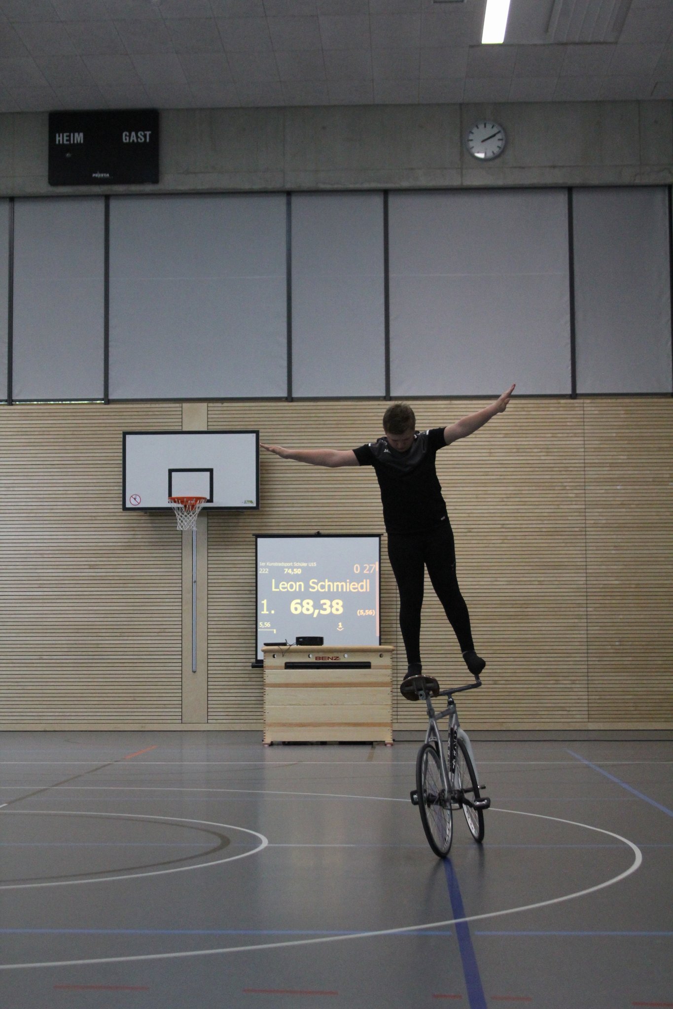 Leider ließ sich Leon zwischen den Übungen etwas zu viel Zeit, sodass die letzte Übung außerhalb der Wertungszeit lag und ihm dadurch einige Punkte verloren gingen. Am Ende stellte Leon 74,50 Punkte auf, fuhr 61,71 Punkte aus und erreichte damit einen hervorragenden 4. Platz.