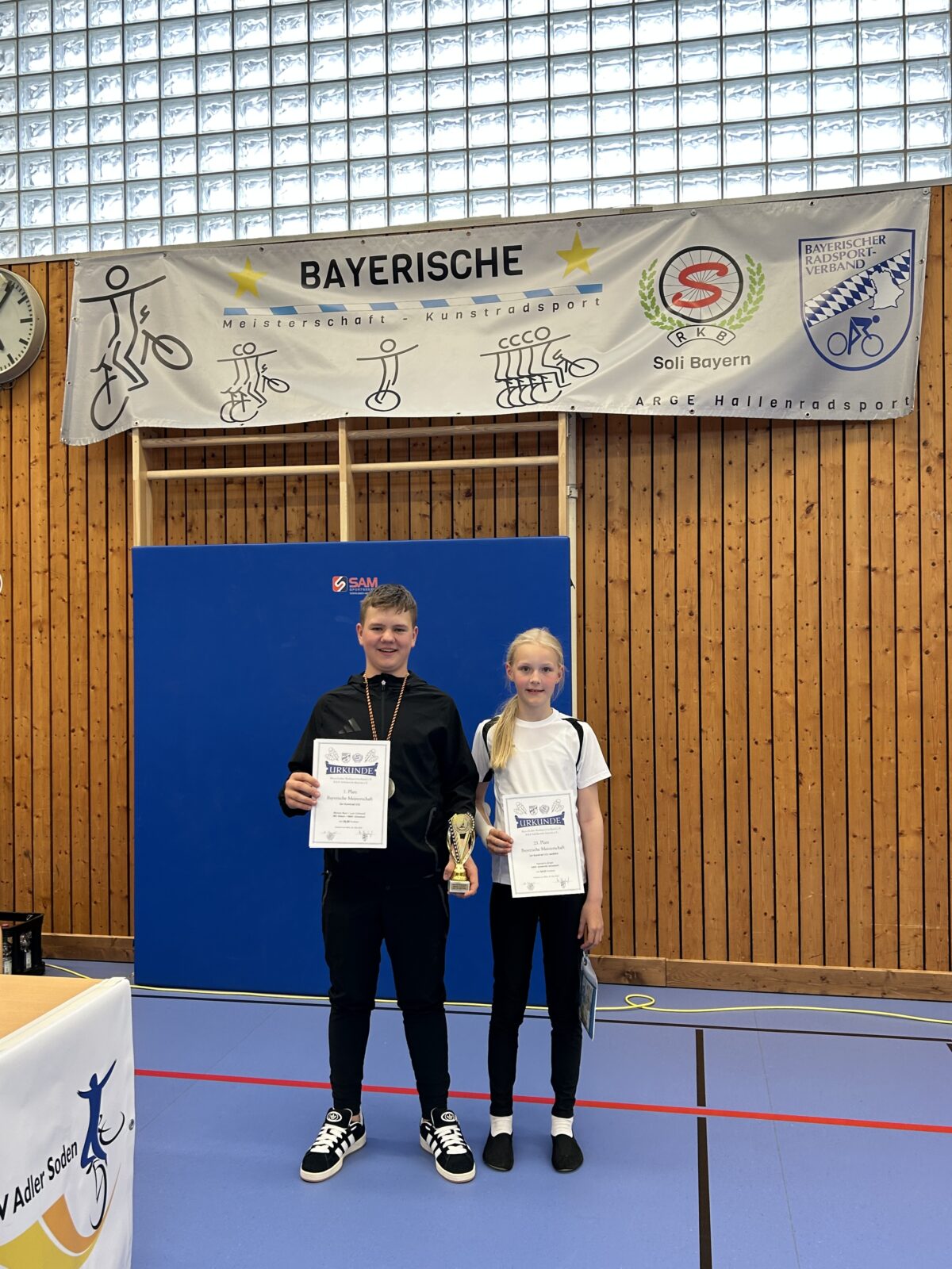 In der offenen Klasse der 2er Schüler traten Maresa (RKV Bullach) und Leon als Startgemeinschaft Bullach/Schwabach an. Mit einer nahezu fehlerfreien Kür und 58,00 Punkten sicherten sie sich souverän den Bayerischen Meistertitel und qualifizierten sich für die Deutsche Meisterschaft am 14./15. Juni in Wiesbaden.