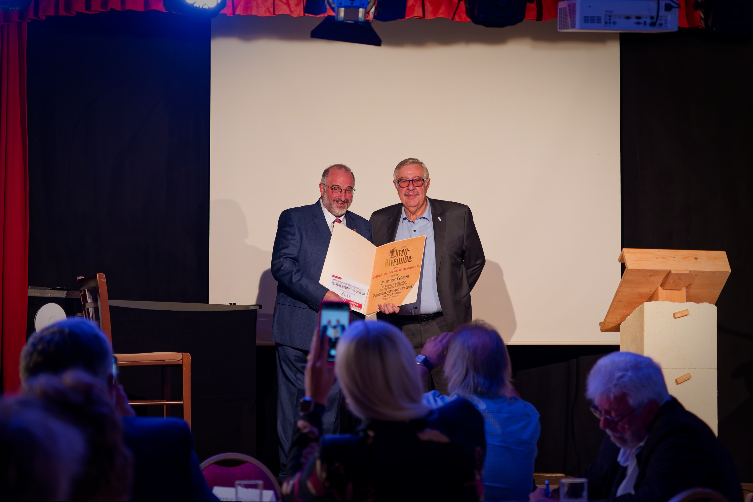 Neben ein paar Ansprachen unseres 1. Vorstands Alfred Rettig-Hiebsch, von Oberbürgermeister der Stadt Schwabach, Peter Reiss, dem Stadtverbandsvorsitzenden Helmut Gruhn, Landtagsabgeordneten Karl Freller und Harald Schmidt, unserem Präsidenten des RKB, gab es noch einige sportliche Darbietungen.