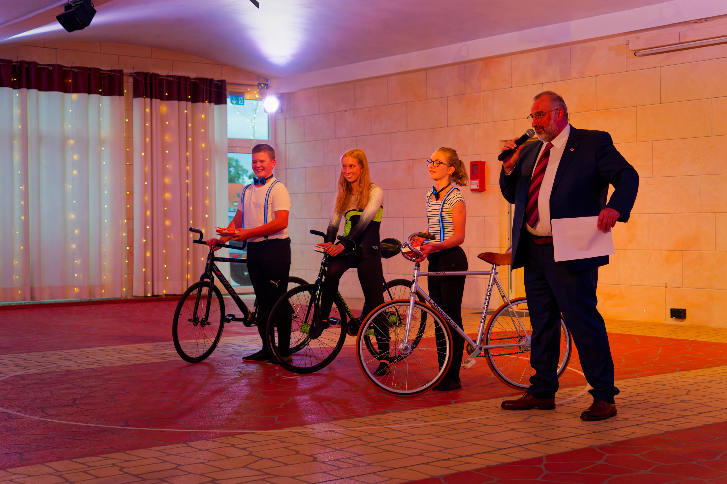 Unser Sportler Leon Schmiedl zeigte zusammen mit Maresa Maul vom RKB Bullach eine tolle Kür auf dem Kunstrad. Judith Kolb stieß dann als dritte Fahrerin dazu. Es wurde eine tolle Show mit drei Sportlern. Judith zeigte dann noch einen Ausschnitt ihrer aktuellen Kür.