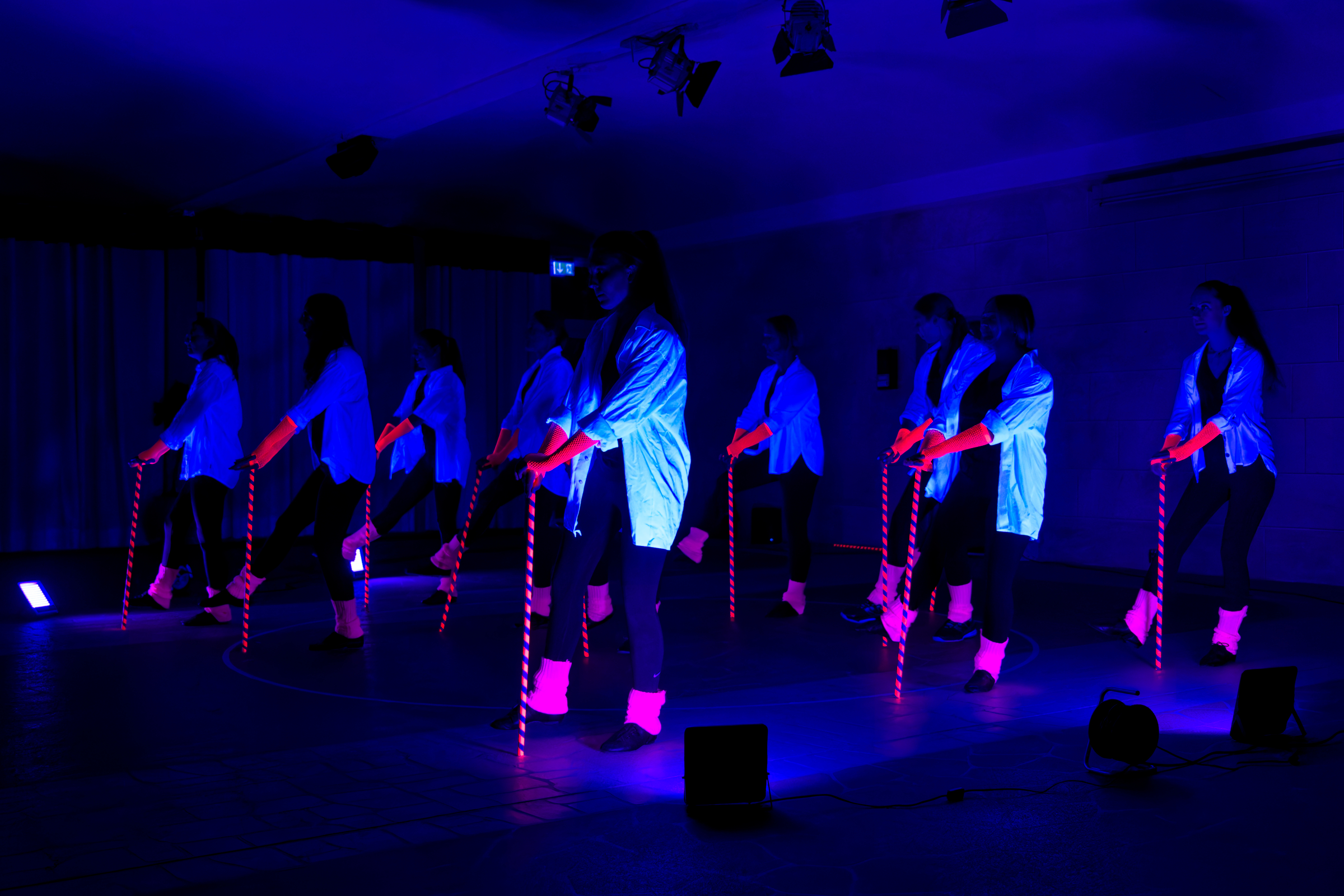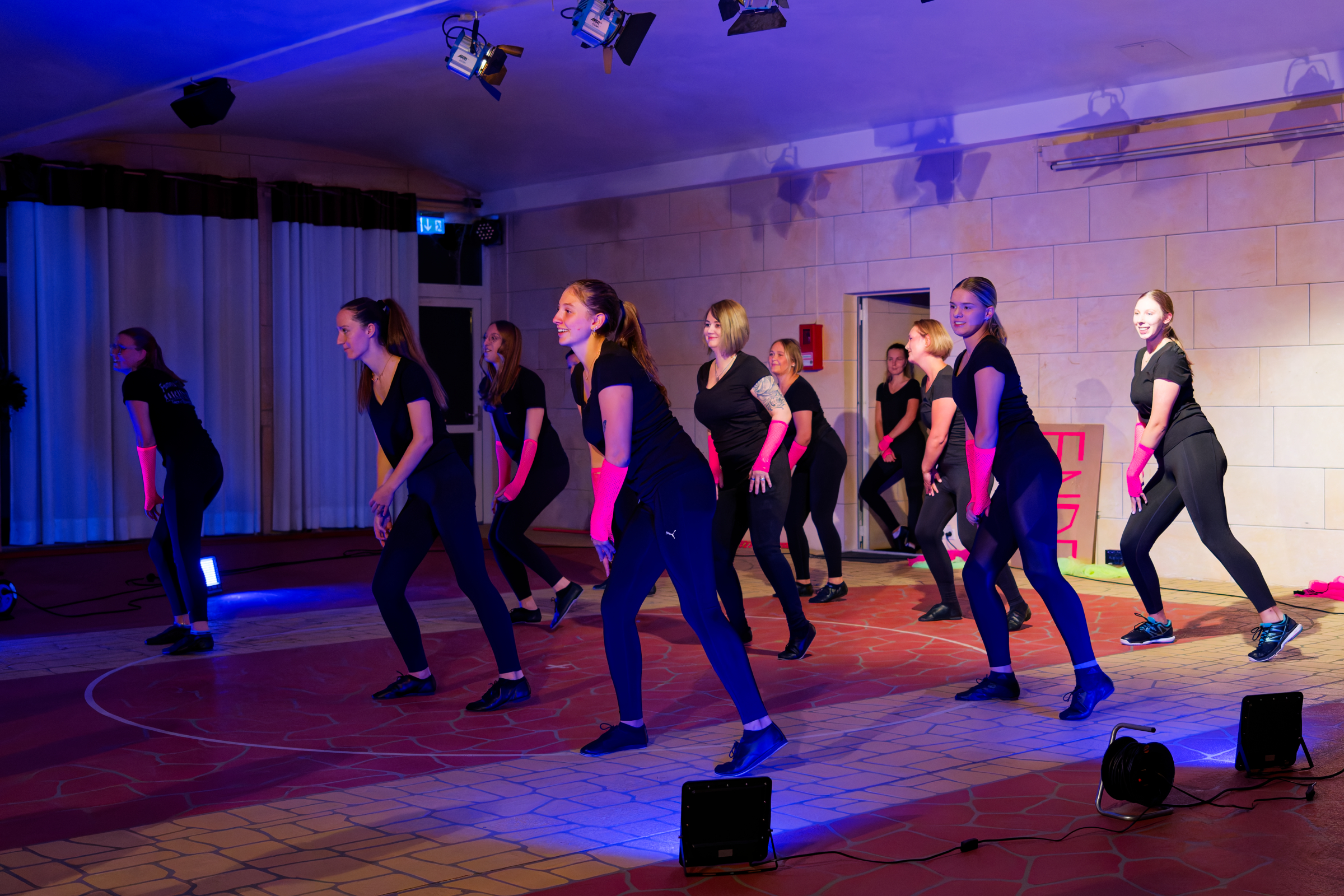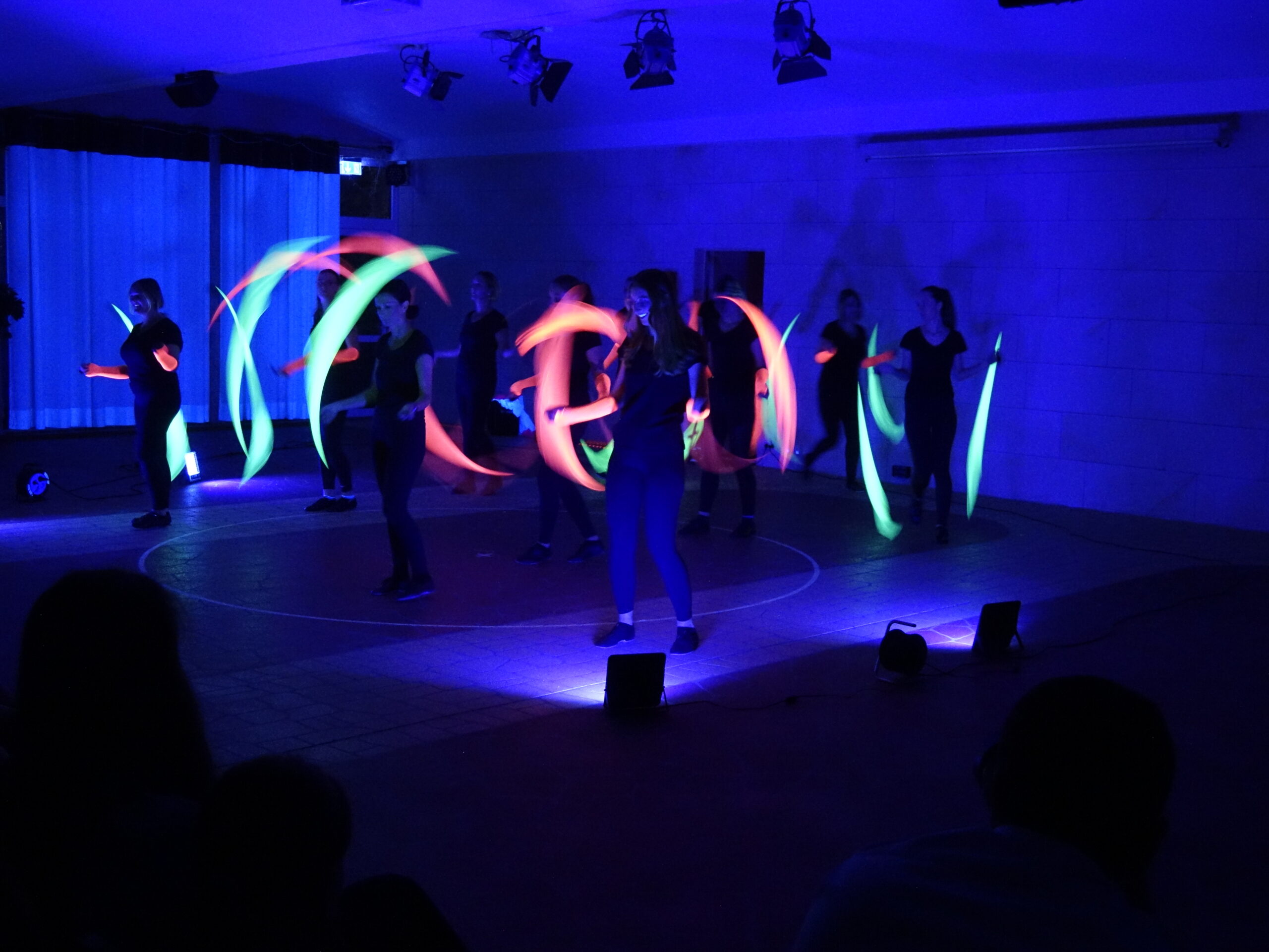 Der 4’er und 6’er Einradreigen der Soli Roth konnte auf einer Fahrfläche, die absolut nicht Standard war, eine tolle Darbietung zeigen und die Damen der Tanzgruppe „Femmes Fada“ vom 1. FC Schwand beeindruckten mit LED-Poi’s und einer Choreographie unter UV-Licht.