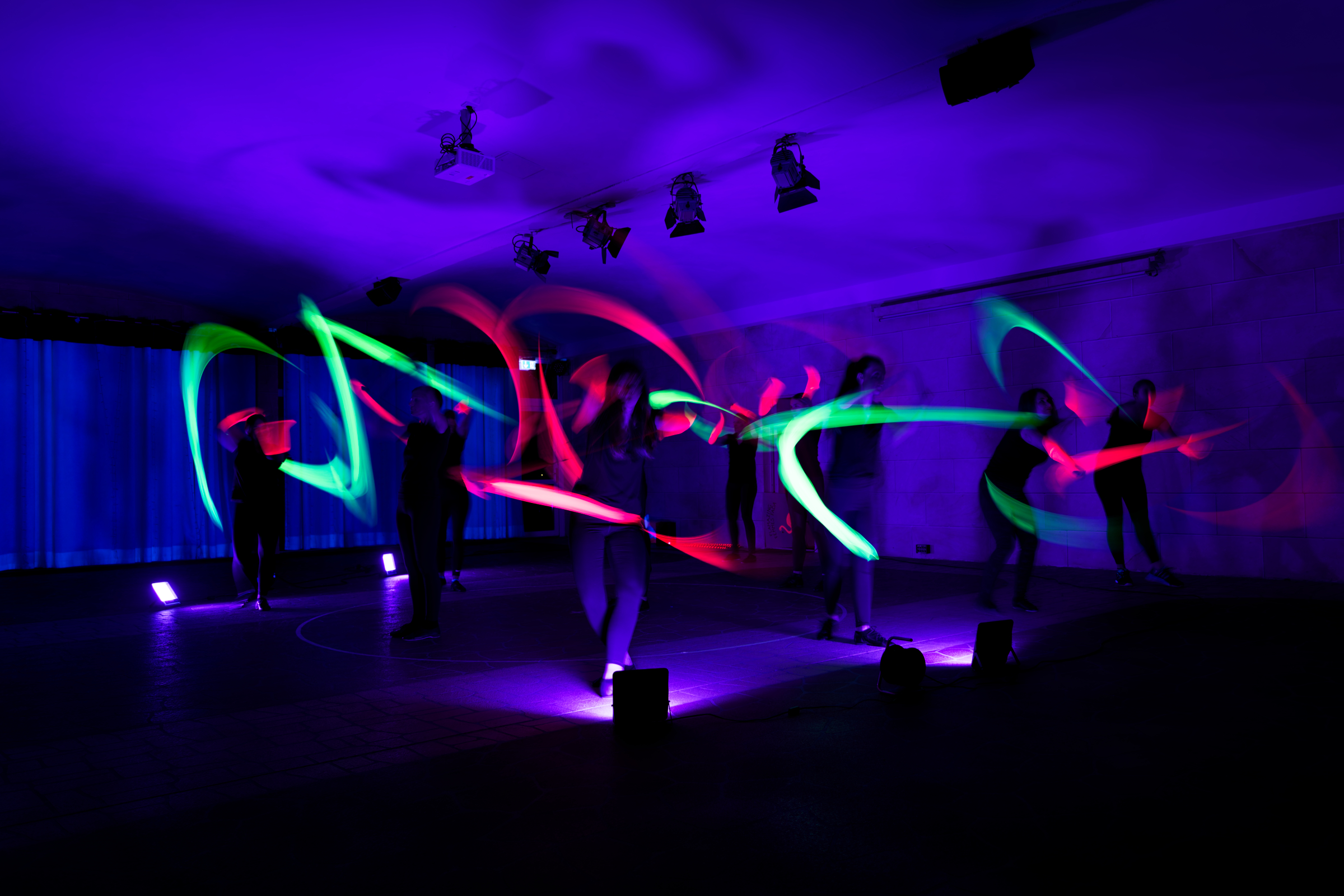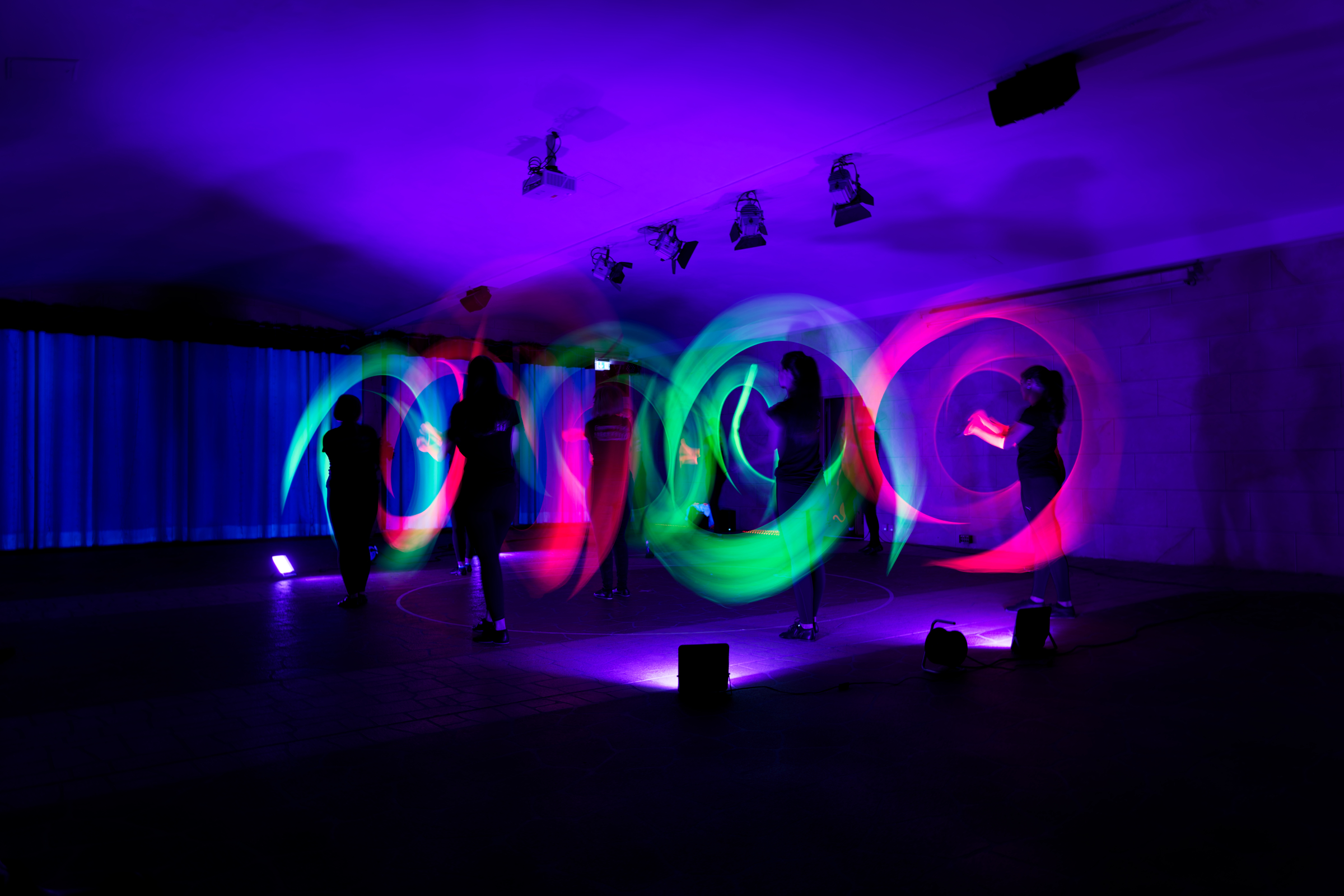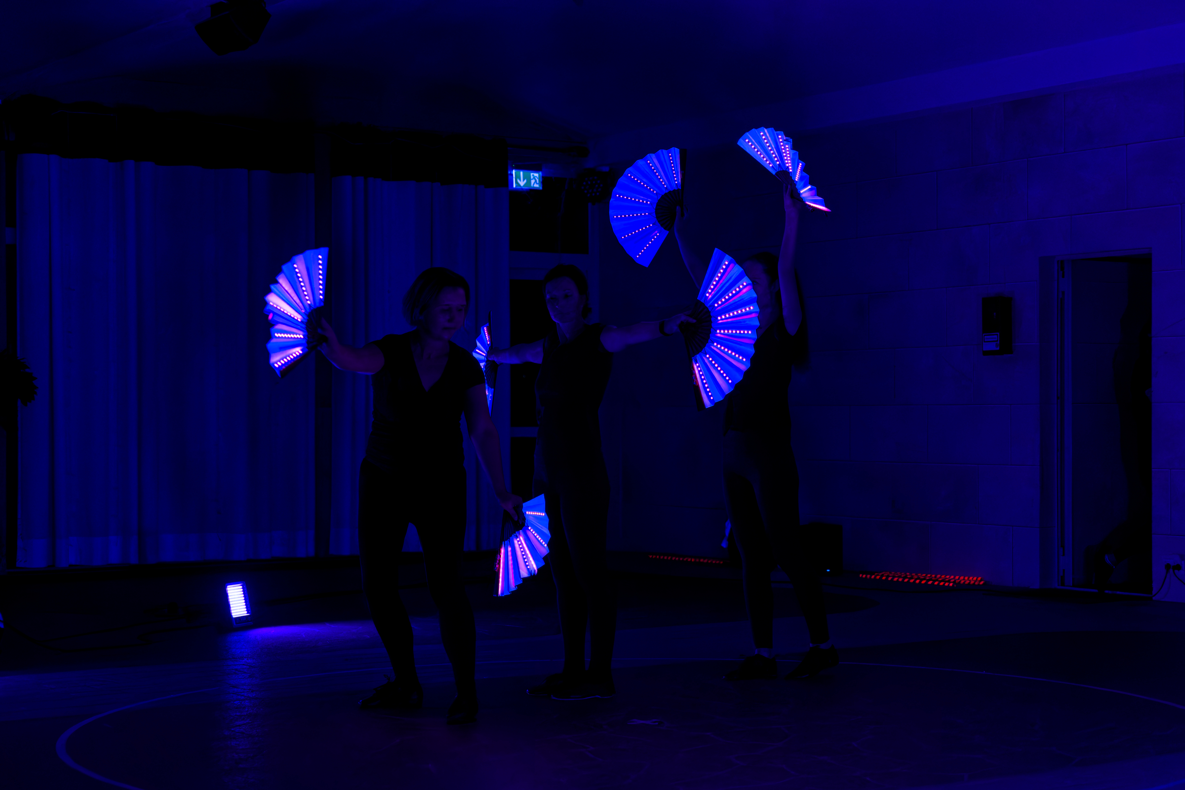 Der 4’er und 6’er Einradreigen der Soli Roth konnte auf einer Fahrfläche, die absolut nicht Standard war, eine tolle Darbietung zeigen und die Damen der Tanzgruppe „Femmes Fada“ vom 1. FC Schwand beeindruckten mit LED-Poi’s und einer Choreographie unter UV-Licht.